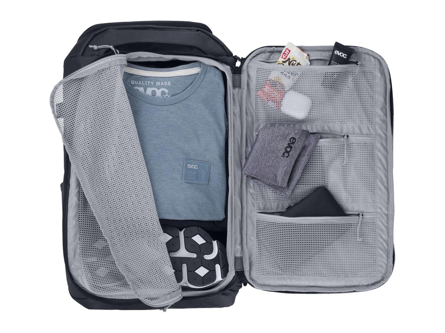 רצועות הכתף ניתנות לניתוק וידית נשיאה צדדית מאפשרות לך להפוך את התיק במהירות למזוודה קומפקטית. גולת הכותרת של התיק – הפאנל האחורי נפתח לחלוטין, כך שניתן לארוז את ה-ATHLETE BACKPACK כמו מזוודה.